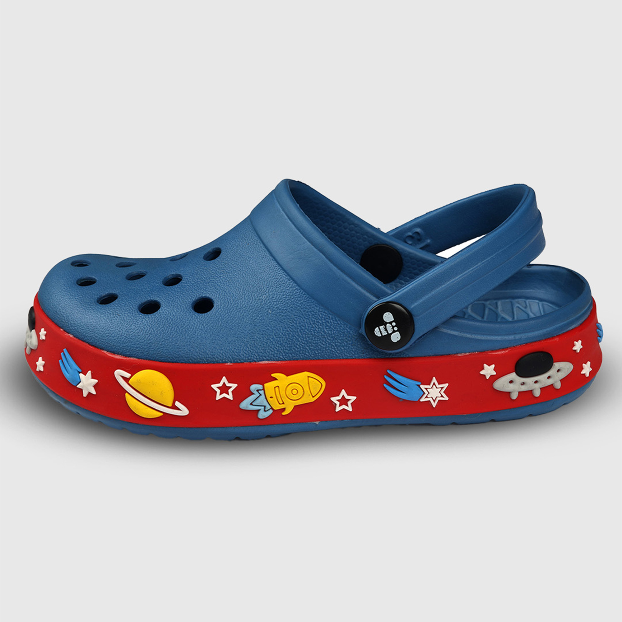 These Boys Clogs make every step an adventure with their vibrant space-themed midsole featuring planets, stars, and rockets. Made from lightweight, water-friendly material, these Clogs For Boys are pe...